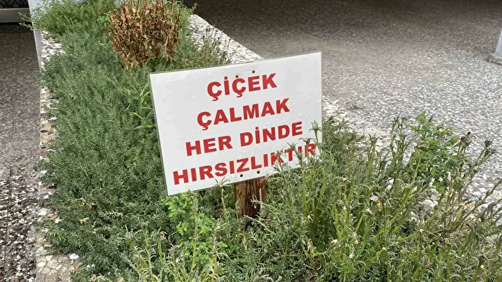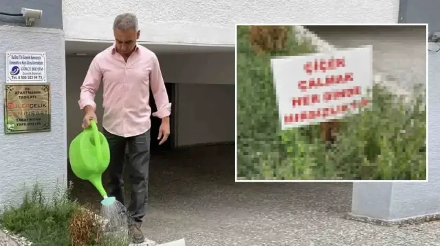 Apartman yöneticisi Aydın Kesikbaş, çiçek hırsızlığına ilişkin yaptığı açıklamada, “Buraya 8 kasa çiçek ekiyorum, sürekli çalınıyor. Yaptığım uyarı sayesinde en azından bir azalma oldu. Çalmak yerine kapıyı çalanlara çiçek verebilirim” dedi.