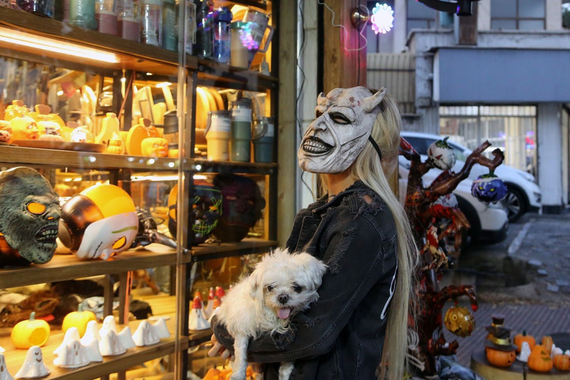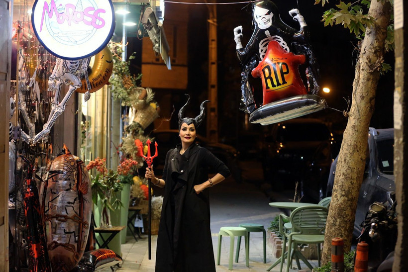 Tahranlılar, Cadılar Bayramı için kostümler ve özel maskelerle donatılmış dükkanları ve mağazaları ziyaret ediyor. Şehrin mağazaları ve kafeleri, turuncu, siyah ve mor tonlarında süslemelerle renkleniyor.